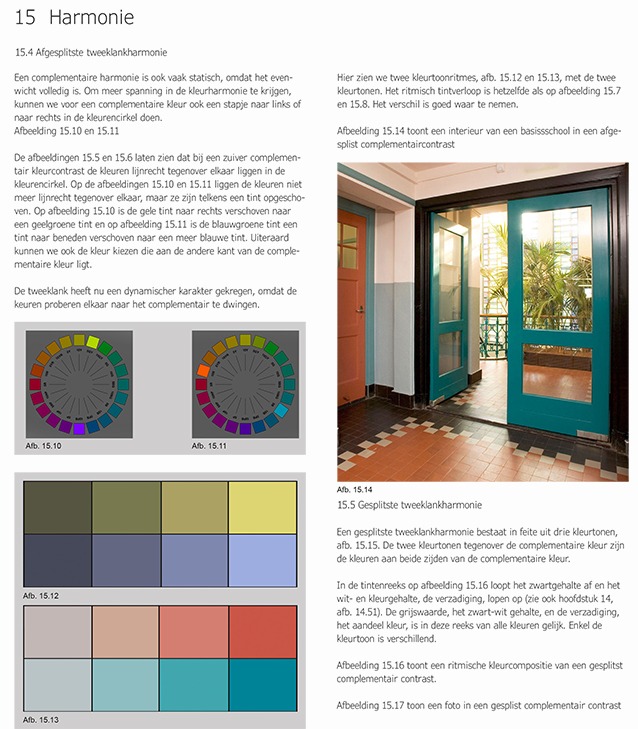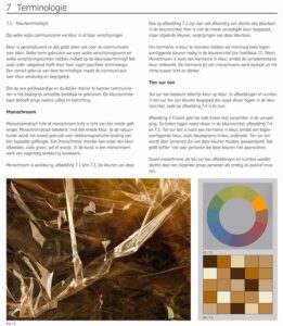 Neem b.v. het hoofdstuk 9 “Aspecten” Daarin wordt je stap voor stap meegenomen in de wereld van kleur om ons heen. Stukje bij beetje worden we ingeleid zonder om de tuin te worden geleid. Heerlijk en wat geniet ik daarvan!